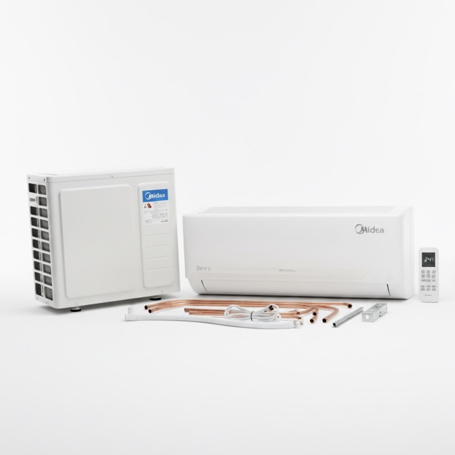 2HP Midea split AC includes an installation kit and anti-bacterial filter.